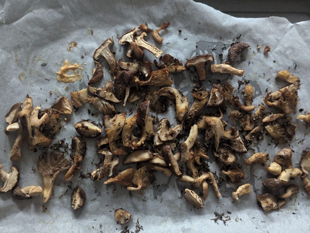 - Add the mushrooms to a bowl with the olive oil, herbs, salt and pepper, then transfer to the other baking tray and cook for 15-20 minutes.